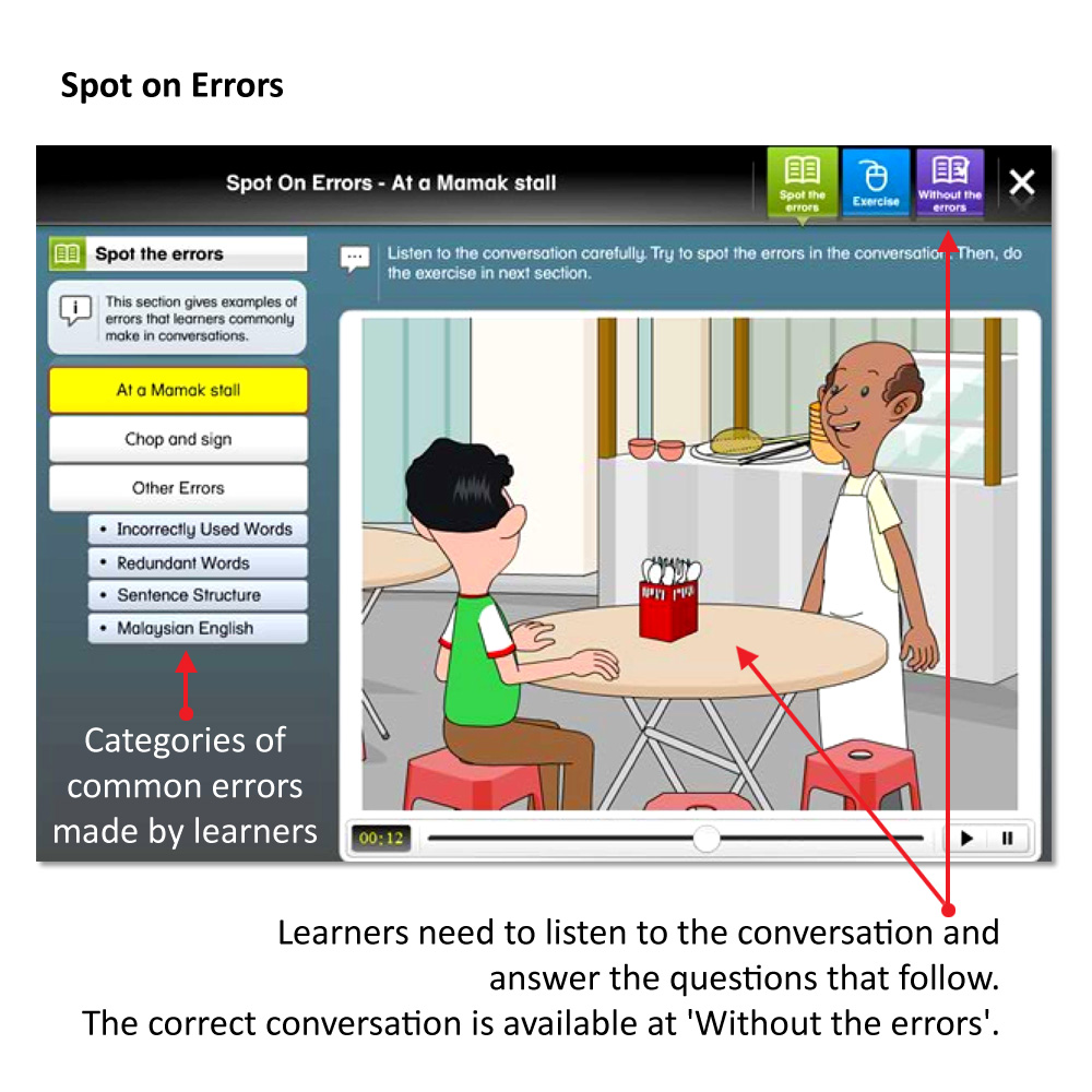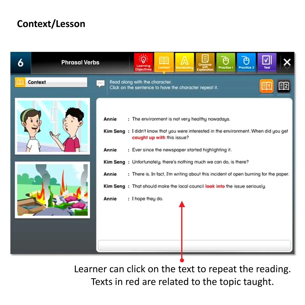 Some activities in the Speaking Section involve a dialogue between you and a virtual character. These activities provide the setting for you to interact with another ‘person'. Use these activities as listening and speaking exercises for developing your listening and speaking skills.
