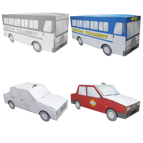 You can either colour the model or paste the coloured paper onto the plain model. Then, play and explore the traffic regulations with these paper models. Have fun!
