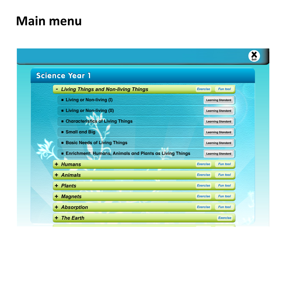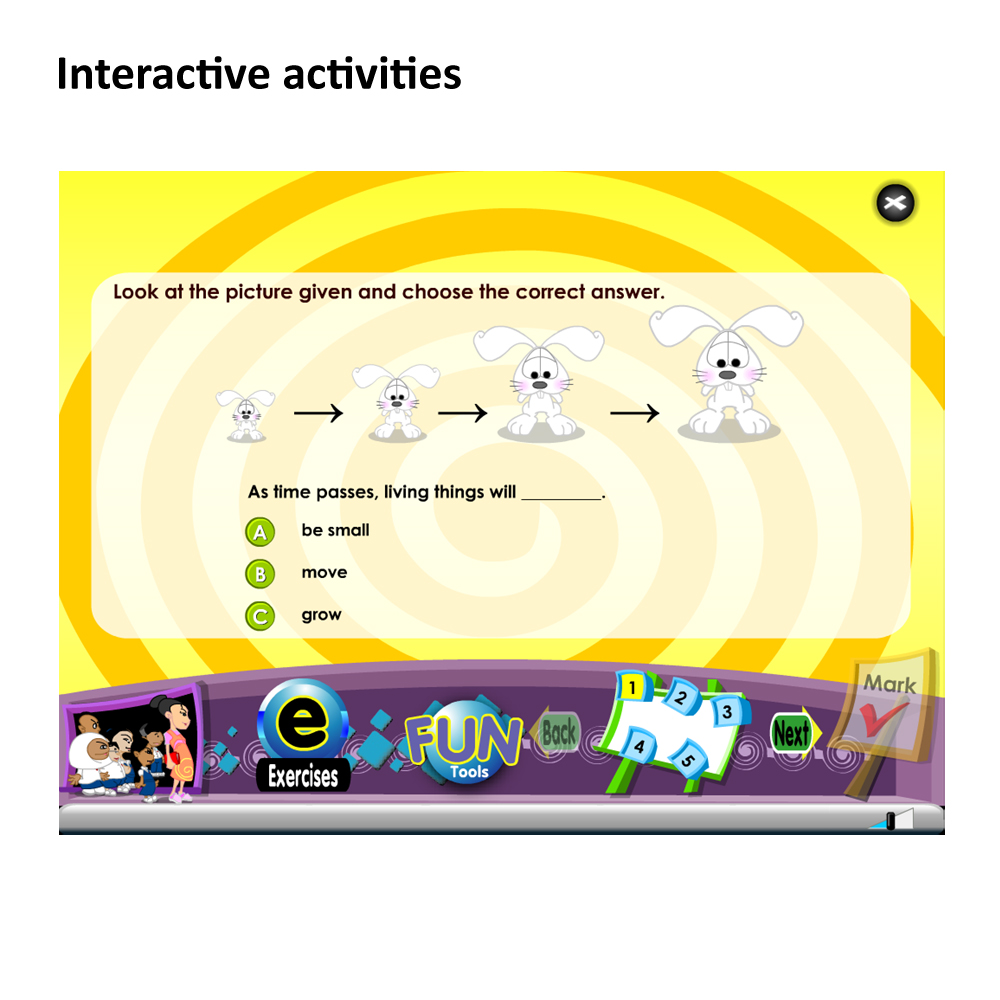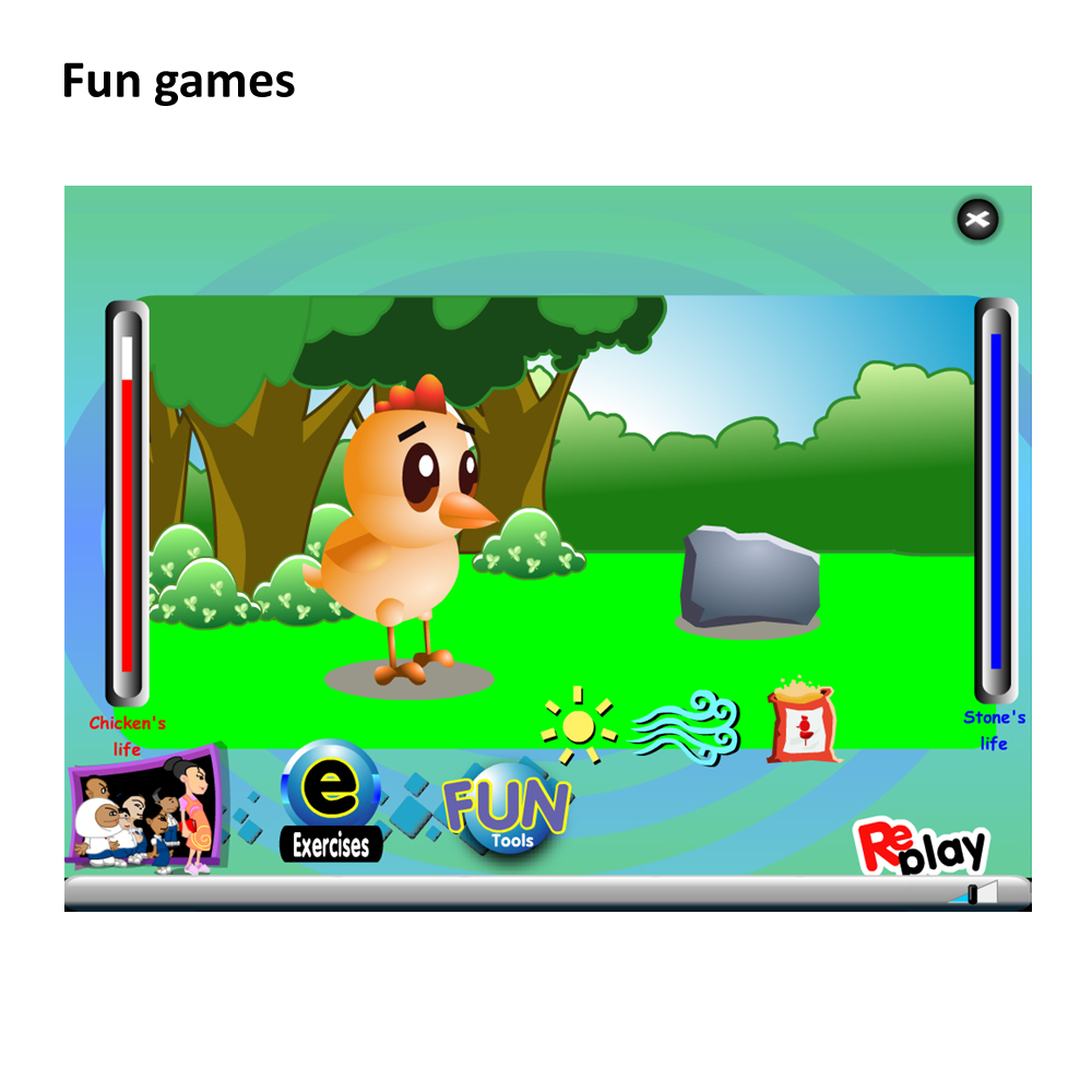 Each lesson contains learning content, interactive hands-on exercises and games. To stimulate pupils’ interest and enjoyment, the lessons are presented in attractive animation. In order to make the learning process easier for pupils, answers are available. Pupils can check the answers when they have completed the activities.